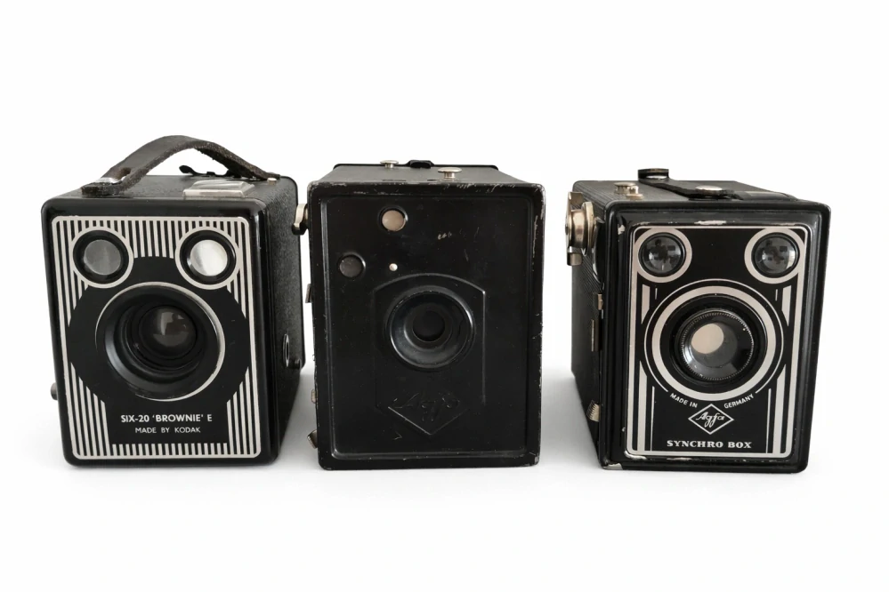 3ks staré historické fotoaparáty do sbírky, dekorace