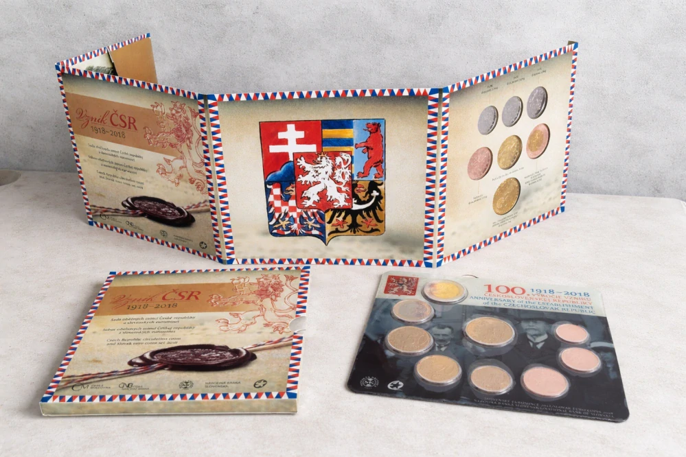 - Sada oběžných mincí České republiky a slovenských euromincí roku 2018 ke vzniku ČSR.